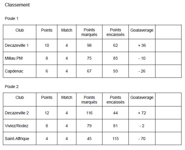 Poule 2 : Saint-Affrique 15 / Decazeville2 25 – Viviez-Rodez exempt