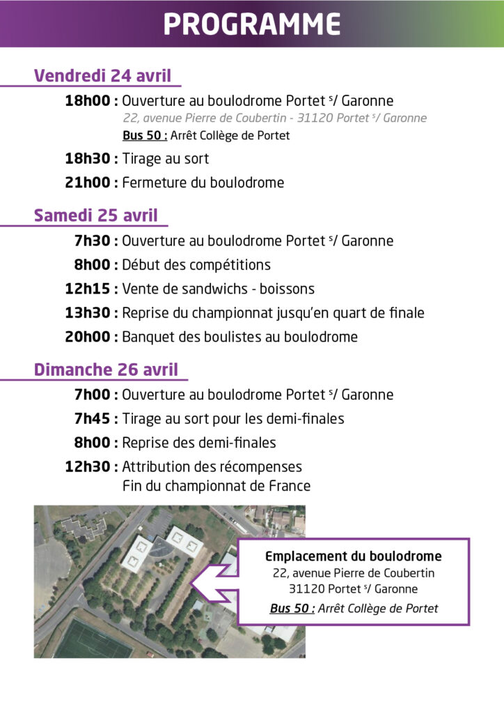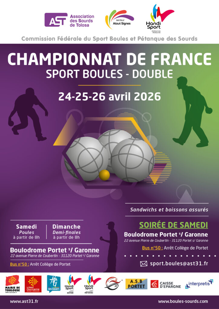 Championnat de France Sport Boules Double 24-25-26 Avril à Portet/Garonne